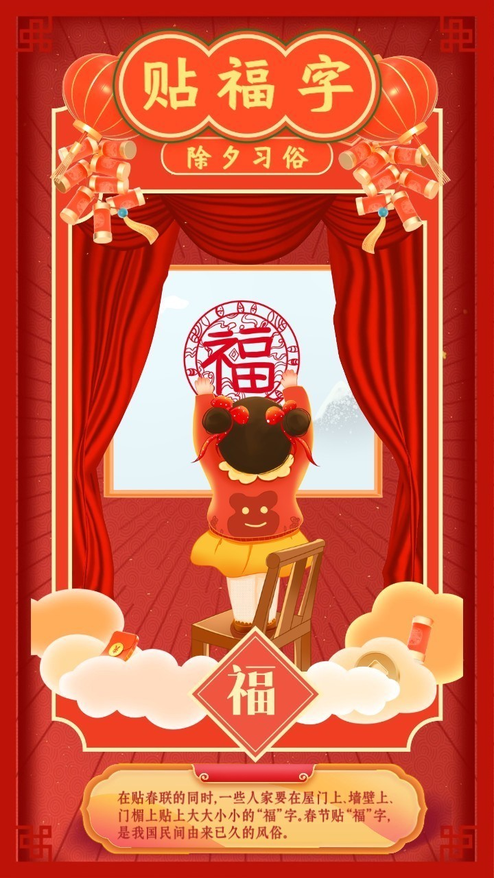 - 春节除夕习俗科普贴福字介绍视频模板